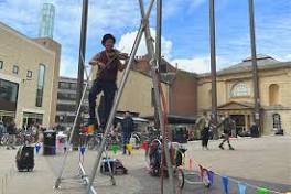 Oxford busking violinist Kwabana Lindsay wows weekend Westgate crowds A violinist on a slack rope wowed crowds in Oxford City Centre yesterday with his unique set.
