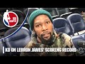 Kevin Durant: 'Pretty cool' to see LeBron approach NBA's all-time scoring record - YouTube Kevin Durant talks about the significance of LeBron James closing in on the NBA's all-time scoring record ahead of the Brooklyn Nets' road matchup ...